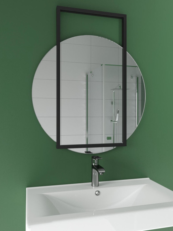 Зеркало «Terraform». Артикул GMZ-07-1/2/3 Эксклюзивное настенное зеркало, которое благодаря своей оригинальной форме идеально подходит для интерьеров, выполненных в современных стилях: хайтек, минимализм, скандинавский, авангардный, лофт, контемпорари. Зеркало круглое, вставлено в промежуток внутри прямоугольной рамы большего размера и выглядит очень эффектно. Рама металлическая надёжная покрыта матовой эмалью, а само зеркальное полотно производства известного бельгийского бренда AGC отличается безупречным качеством. На обратной стороне конструкции имеются специальные приспособления для крепления к стене.Характеристики:– габаритные размеры рамы – 890х740 мм, профиль – 15х15 мм; – диаметр зеркального полотна – 740 мм, толщина – 4 мм; – устойчивая матовая порошковая окраска; – цвета – золотой, чёрный, белый; – саморезы для крепления к стене в комплекте; – вес – 7 кг; – гарантия – 1 год.